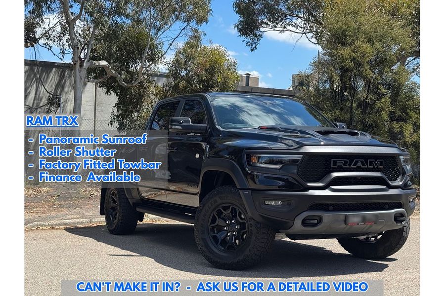 JUST 20 MINUTES FROM MELBOURNE AIRPORT HEAD NORTH TO THE END OF THE RING ROAD! 2023 RAM 1500 DT TRX UTE 6.2L SUPERCHARGED ENGINE 4X4 AUTOMATIC PETROL DIAMOND BLACK PANORAMIC SUNROOF ROLLER SHUTTER FACTORY FITTED TOWBAR 5 SEATER BLUETOOTH CONNECTIVITY ALLOY WHEELS FULL SERVICE HISTORY ALL TRADE-INS ACCEPTED HASSLE-FREE IN-HOUSE FINANCE NATIONWIDE DELIVERY PRICES ARE DRIVE AWAY NO MORE TO PAY FOR VICTORIAN PURCHASES ALL VEHICLES COME WITH OUR 5 YEAR MECHANICAL PROTECTION PLAN* EXTENDED WARRANTY PACKAGES AVAILABLE ALL OUR VEHICLES ARE PRESENTED IN IMMACULATE CONDITION.